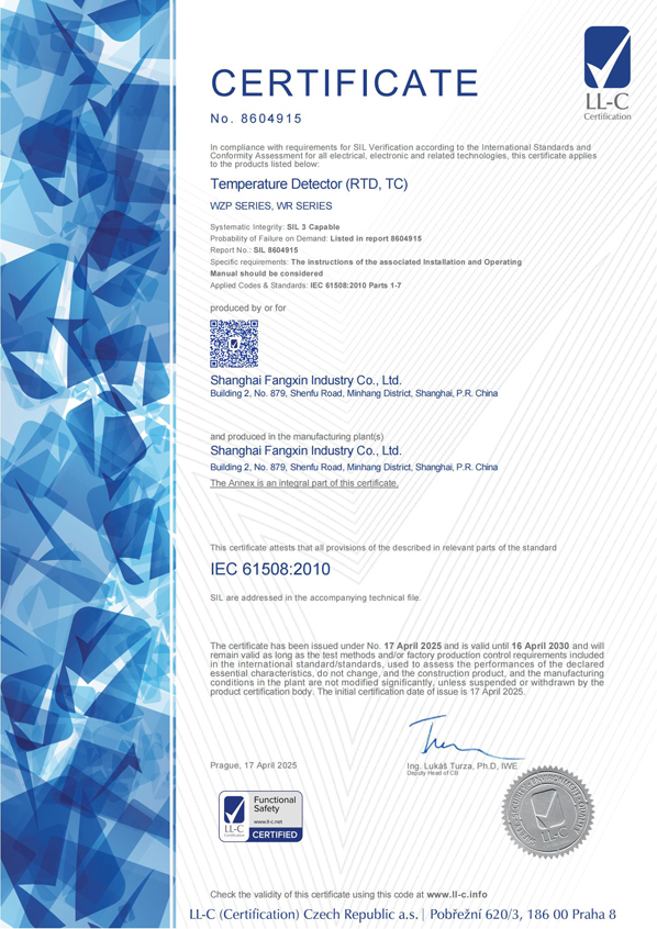 是國內第一家獲得許可證生產的廠家,它適用于具有粉塵性爆炸氣氛的場所。我公司生產的熱電偶、熱電阻,既有國內統一設計產品系列,又有引進、吸收、消化具有國外同類產品性能和優點的新品種,技術規范符合國際電工委員會(